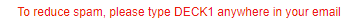 required. Please double-check your phone and/or email entries, enter DECK1 into VERIFICATION field,